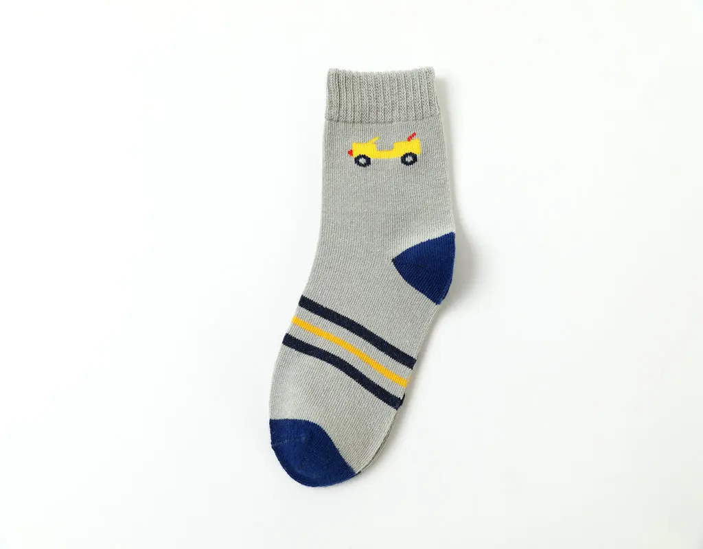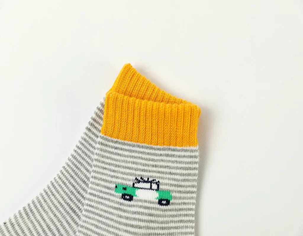New Children's Socks Cotton Striped Car Boys' Socks Spring Autumn Cartoon Student Socks For Boys 3-15 Year